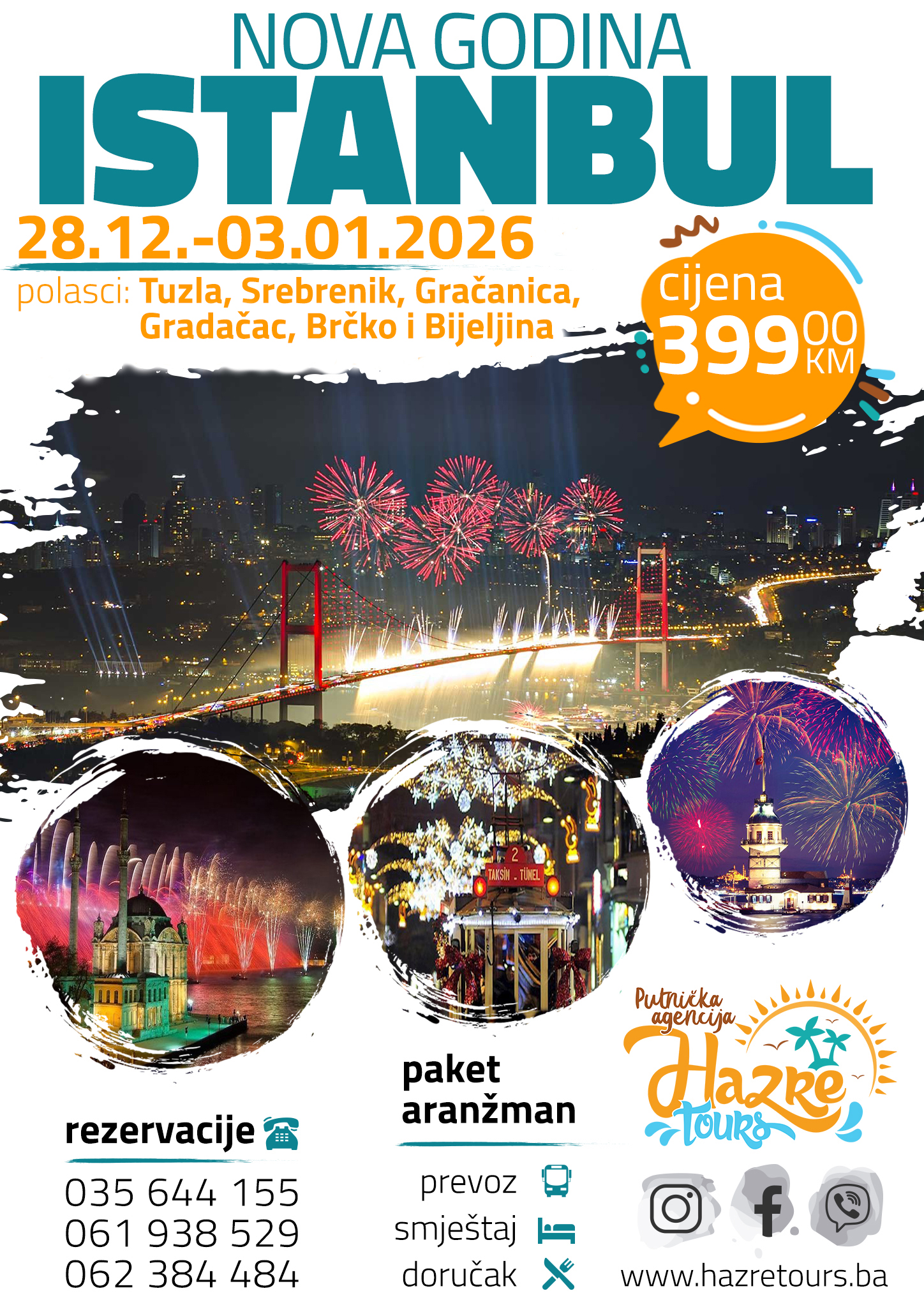 - Za ovaj aranžman važe opšti uslovi putovanja agencije Hazre Tours / dostupni na našoj web stranici.